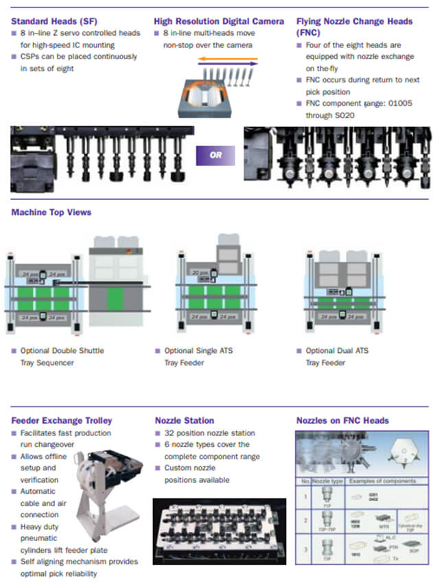 | Optimal placement rate: | 24,000 chip | Simultaneous pick with 8 heads |