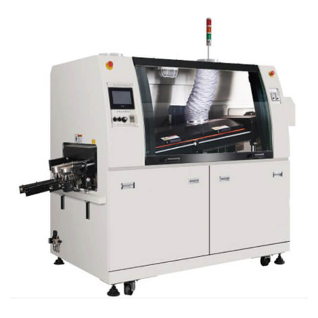 The wave soldering machine is mainly composed of transport belt, flux adding area, preheating area and tin furnace.