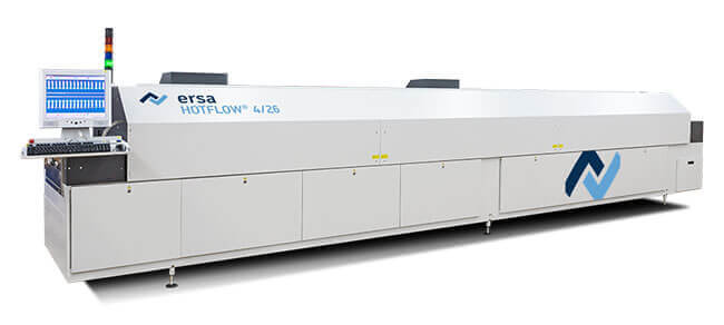 The high-end reflow soldering systems of the Ersa HOTFLOW 4 series distinguish themselves by providing excellent thermal performance and the best energy balance. With process lengths from 3.3 meters to over 7 meters, respectively 8 to 26 heating and up to 4 cooling zones, the systems of this series cover all applications calling for economical reflow soldering with the highest throughput and the lowest energy and N2 consumption. Naturally, the traditionally high solder joint quality achieved with Ersa systems, the optimized process control and the necessary process stability are being maintained, while still offering a very high degree of system uptime.