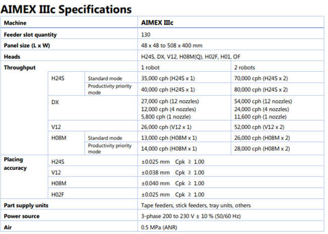 AIMEXIIIc is a compact placement machine with a width of 1280mm and a depth of 2346mm.