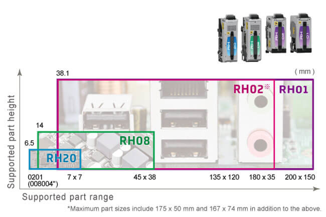 The AIMEXR utilizes the same advanced heads as the NXTR, offering exceptional versatility. These heads expand the range of compatible parts, enabling seamless line balancing and ensuring consistent production rates, even when transitioning to a new set of parts for the next production run.