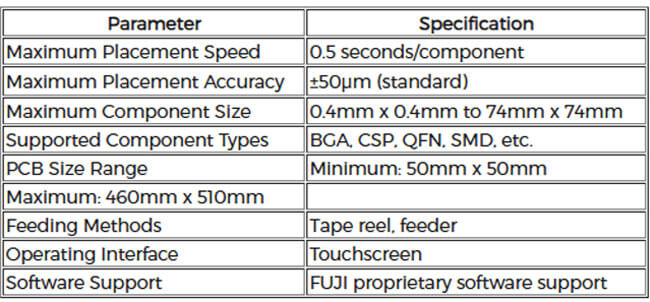 The FUJI NXT M6III supports a variety of component sizes and types, capable of handling demands from small components (0.4mm x 0.4mm) to large components (74mm x 74mm). This flexibility allows the equipment to adapt to different production batch requirements, reducing equipment changeover time.