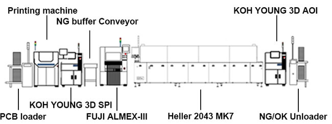The industry’s fastest full 3D measuring inspection solution- Solves shadow problems by utilizing 2-way projection- Full 3D foreign material inspection for the entire PCB- Provides accurate inspection data with real-time PCB warp compensation·Full 3D data-based process optimization solution: Realization of industry 4.0 / smart factory- Realizes real-time process optimization through powerful SPC analytics- Provides a powerful printing process optimization tool·Leading model for high-speed mass production line
