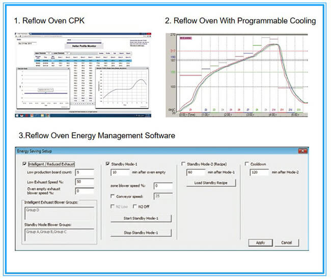 We provide a dynamic 3 tiered system (Tier 1: Reflow Oven CPK, Tier 2 Process CPK, Tier 3 Product Traceability) enabling customers to quickly improve product quality and yield while reducing costs. And the additional benefits of automatic record keeping and recall provide customers with the peace of mind that all reflow soldering process parameters are under control and within spec.