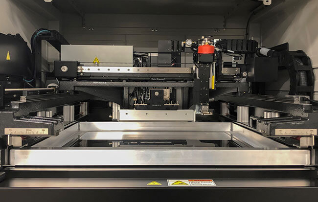 The EnclosedFlow print head delivers superior volume/yield on fine pitch pads. Print fine pitch features such as 01005s and 0.3 mm pitch CSPs with up to 50% greater volume and 25% lower deviation that squeegee blades. The EnclosedFlow print head ensures optimal aperture filling for fine pitch devices and crisp uniform printing with less waste.
