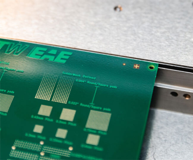 The EdgeLoc system uses a side snugging technique that removes the need for top clamps which interfere with the PCB to stencil contact. The result is optimal gasketing and more volumetrically consistent edge-to-edge prints. Choose the robust EdgeLoc II with side only clamping or EdgeLoc+ which can change between edge and top clamping;