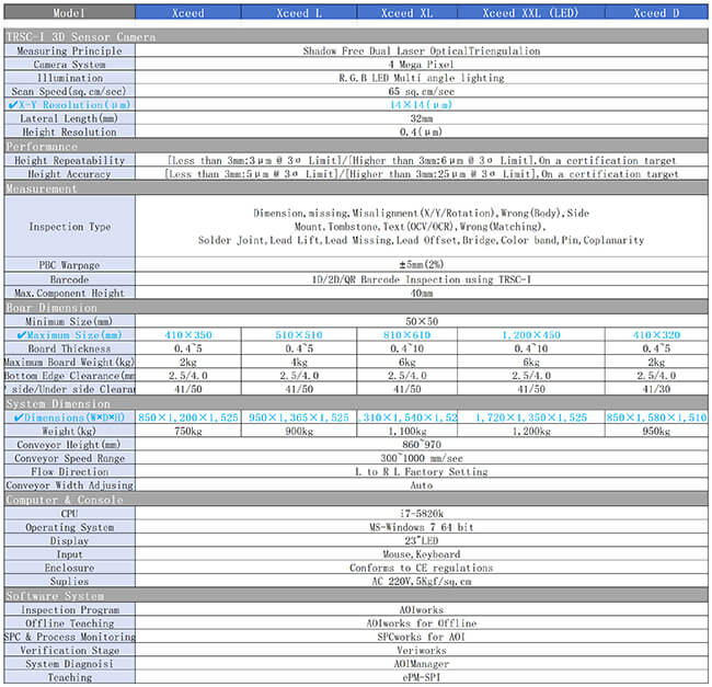 PARMI Xceed is a cutting-edge 3D automatic optical inspection (AOI) equipment designed for electronic manufacturing quality control. It integrates 2D/3D hybrid inspection technology with a high-speed TRSC-1 sensor head, achieving an inspection speed of 65cm²/sec and supporting PCBs up to 40mm in component height. With user-friendly Veriworks software, real-time defect analysis, and seamless network connectivity, it efficiently detects missing components, misalignment, solder defects, and foreign materials, while ensuring high accuracy even for warped PCBs (±5mm).