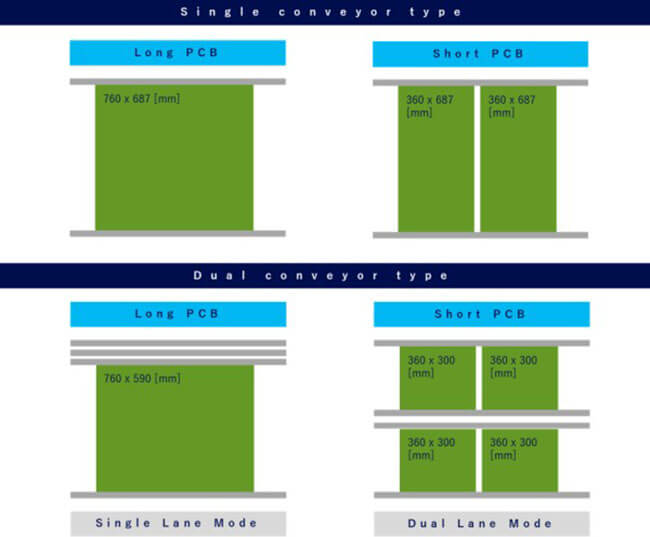 | PCB Dimensions (mm) | Single conveyor: |