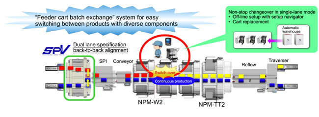 Independent mounting of tray components is achieved by directly linking NPM-TT2 with NPM-DX/D3/W2 dual lane specification!