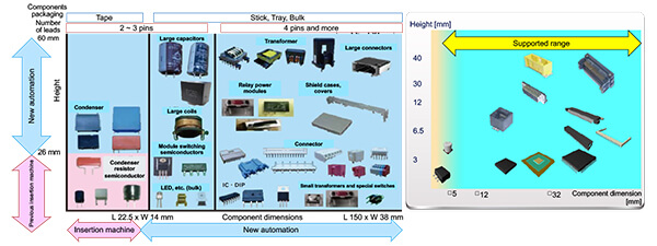 Supporting a wide variety of component sizes, packages, weights, and number of pins as an ideal solution for the automation of large and odd-form component insertion.