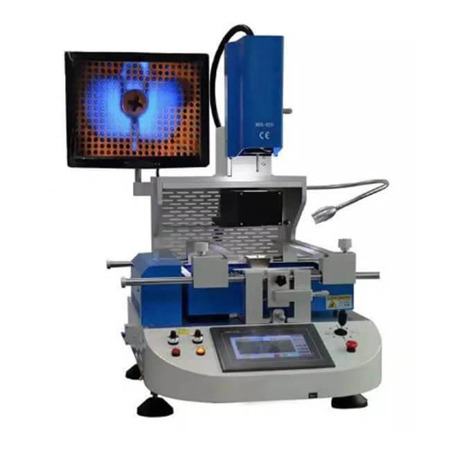 ①High-definition touch screen human-machine interface, integrated design of upper heating device and mounting head. Equipped with various specifications of titanium alloy BGA nozzle, which can be rotated 360° at will, easy to install and replace.