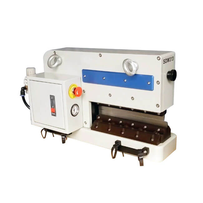 PCBs are separated by the SDM313's dual wedge-shaped knives in one gentle rocking motion that shears the panel along the score line, without stress or damage to the PCBs or components. This machine is effective on standard circuit boards as well as metalized, flexible and ultra-thin PCBs.