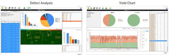 Solder quality is managed and maintained through comprehensive monitoring of board solder amounts and defect trend analysis. Extensive reporting functions and data analysis tools allow for export of defect type rankings and yield charts.