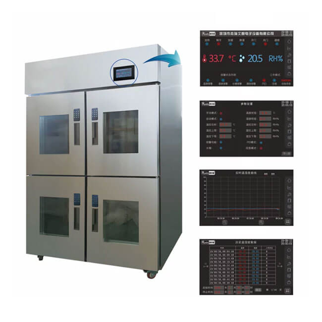 The self-developed touch control panel displays the working state and temperature and humidity of the equipment more intuitively. The setting of temperature, humidity and working mode is more convenient, intuitive and fast. Added the historical temperature and humidity query function to monitor the historical temperature and humidity data in charts and tables. All operations are visualized and simplified.
