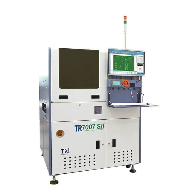 Offering inspection speeds of up to 180 cm2/sec, the TR7007 SII is the fastest solder paste inspection system in the industry. This highly accurate inline shadow-free solder paste inspection solution offers full 3D inspection at resolutions of 15 µm or 10 µm. Built on a high precision linear motor platform, the system’s hallmark features include closed loop function, enhanced 2D imaging, auto-warp compensation and fringe pattern technology. Increase capacity without sacrificing additional space with an available dual-lane configuration.