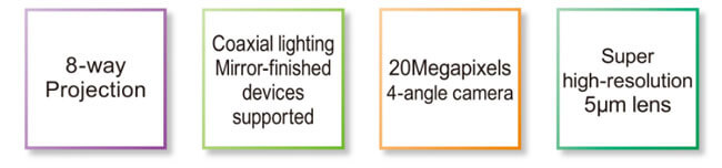 The newly developed high-performance inspection head significantly improve the inspection performance of the 2D inspections, 3D inspections, and 4-angle cameras. The inspection performance can be applied to all SMT sectors