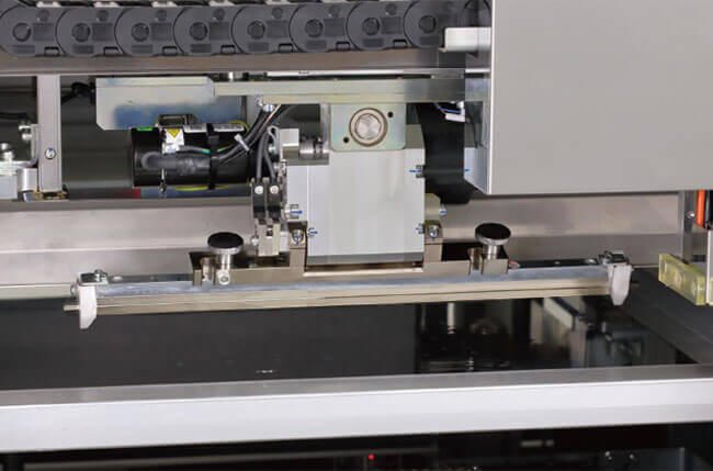 The function presets the stencil needed for the next production task while the printer is operating and automatically makes setups-changeovers. Space-saving design with small footprint sets and recovers used stencils all in one batch at the machine rear. This slashes the time needed for stencil replacement since workers can do stencil presetting in advance whenever they have time available without having to stop the printer. The squeegee head is now equipped with a new solder receiver plate to prevent solder from falling onto the stencil during replacement.