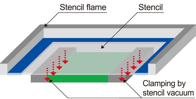 A stencil vacuum mechanism delivers consistent high accuracy printing with no effects from stencil droop. Also drastically cuts the setup time since no offset entry is needed during back and forth printing movement.