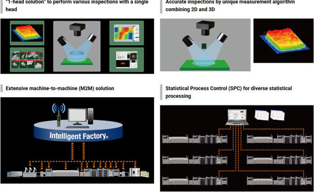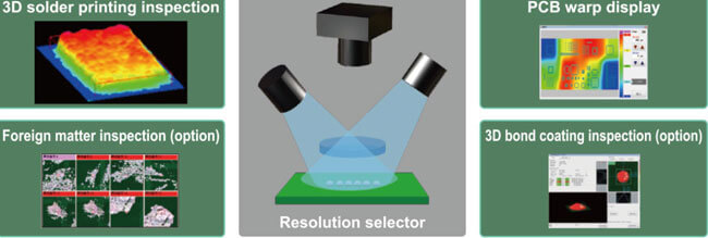 Achieves high-accuracy high-speed inspections using 3D+2D inspection, image resolution switch-over and more