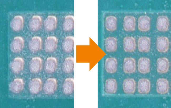 Super high-resolution technology makes automated inspections on the same type PCB while switching between a maximum of 3 resolution levels Unit flexibly handles components from super-tiny components to large-size components.