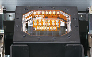 0201mm ultra-tiny chip (option) up to max. 120 x 90mm components can be handled by a single standard camera. Max. component height is 30mm (component height + board thickness), the greatest class on the market.