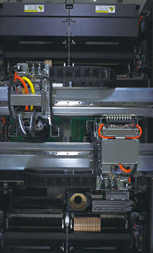 The all-around type head that can provide not only high-speed but also high flexibility handling from super-tiny 0201mm components on up to large-size components of 55 x 100mm and heights to 15mm. Combining the HM head with the RM head realizes high-speed mounting of all types of components.