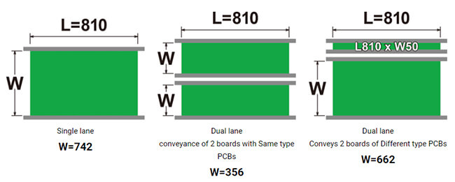 | Note 1 Same type PCBs: L810 x W356 to L50 x W50 | |