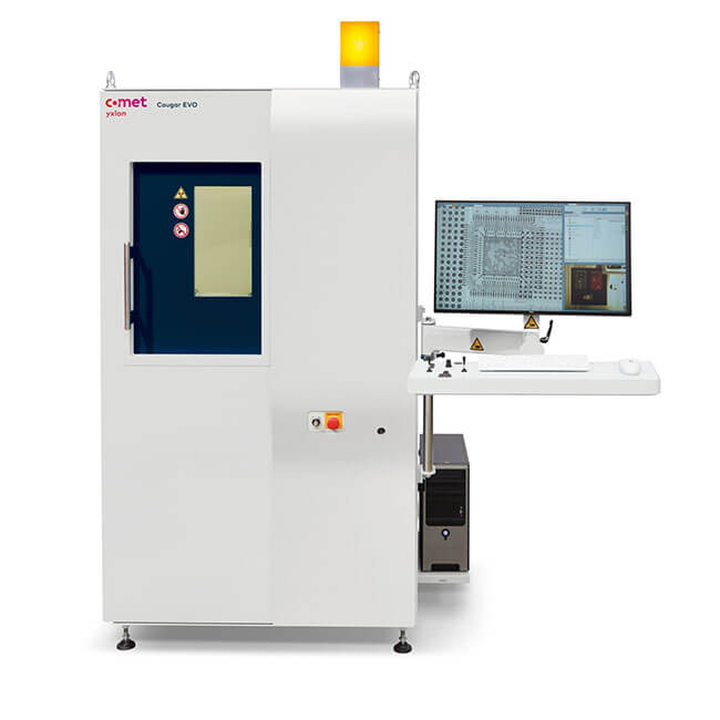 Electronic components and semiconductor devices are the key elements of most electronic systems. Due to their compactness and density, testing requires maximal image resolution at low power and low voltage. Void compilations, including multi-area voiding, need accurate, repeatable inspection routines. The Comet Yxlon Cougar EVO offers:
