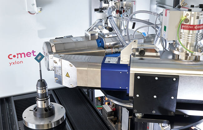 With its high power of 320 W and water-cooled target, the 225 kV Comet Yxlon directional beam tube enables quick CT scans in less than a minute. In 2D operation, the tube reaches a spatial resolution of 4 μm. The possibility of switching between the micro-focus directional beam tube and the nano-focus transmission tube within a single inspection sequence substantially increases the application range.