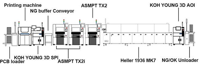 SMT smart factory SMD line machine with ASMPT pick and place machine, SIPLACE TX placement, for SMT assembly line.