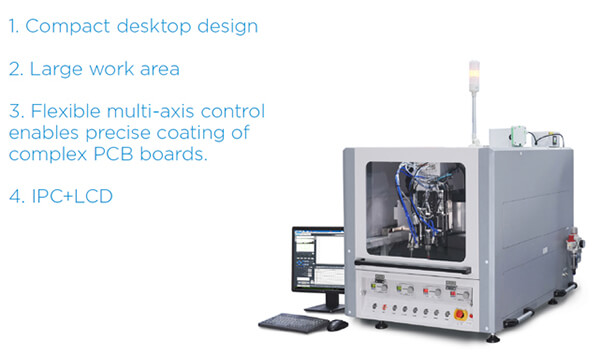 MYC10 is a flexible three axis robot with an optional 4-position rotation and tilt unit. This unit is ideal for virtually any benchtop of laboratory selective coating application. MYC10 features a robust motion platform using servo motors and precision ball screw drives.