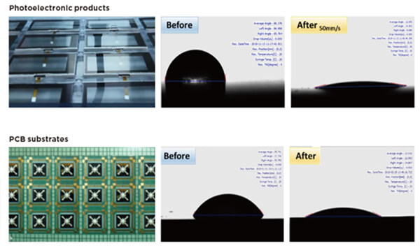 WCA<10° (Wafer) WCA<20° (Plastic) |