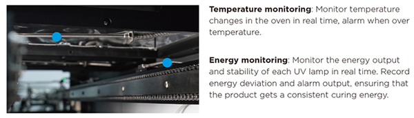 The UV-200 inline curing tunnel is designed for efficient curing of UV or visible light sensitive adhesives, inks and coating materials.