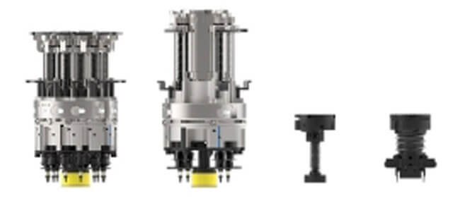 The AIMEX III offers dynamic exchange during production to the best tool for the job. Borderless production is made possible using the DynaHead to dynamically exchange between 12-nozzle, 4-nozzle and single nozzle tools.