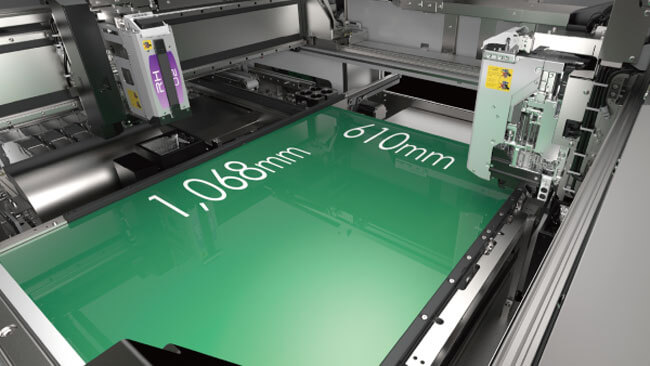 The AIMEXR can handle panels up to a maximum size of 1,068 x 610 mm, making it suitable for a wide range of applications. These include LED placement, automotive panels, and large panels used in communication infrastructure