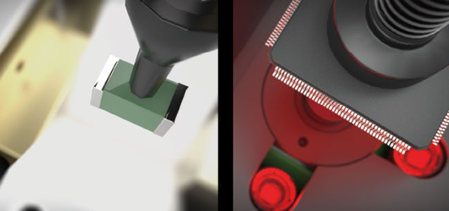 Placement defects caused by operational errors or defective parts are prevented by performing LCR checks on the electrical properties of chip parts and coplanarity checks on the leads and bumps of IC parts. (Option)