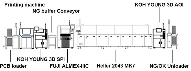 The industry’s fastest full 3D measuring inspection solution- Solves shadow problems by utilizing 2-way projection- Full 3D foreign material inspection for the entire PCB- Provides accurate inspection data with real-time PCB warp compensation·Full 3D data-based process optimization solution: Realization of industry 4.0 / smart factory- Realizes real-time process optimization through powerful SPC analytics- Provides a powerful printing process optimization tool·Leading model for high-speed mass production line