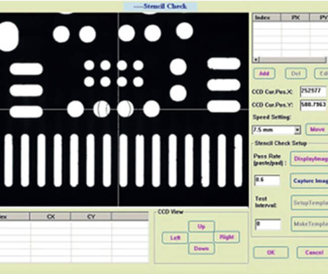 Using panel light installed at the top and CCD camera below to inspect stencil apertures. It automatically detects the clogging of stencil apertures to eliminate poor quality stencil being used, ensure quality printing right from the start.