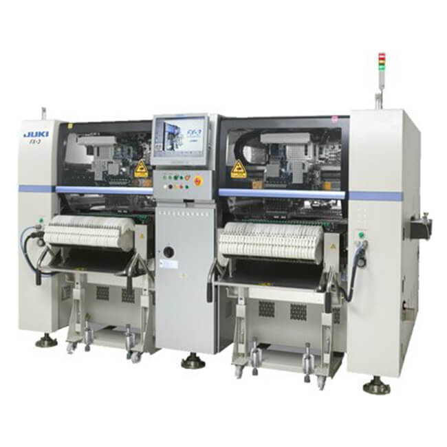Compatibility is maintained with previous equipment such as tape feeders, nozzles, and line control software, reducing the cost of adding an FX3 to any factory that already has other JUKI machines.