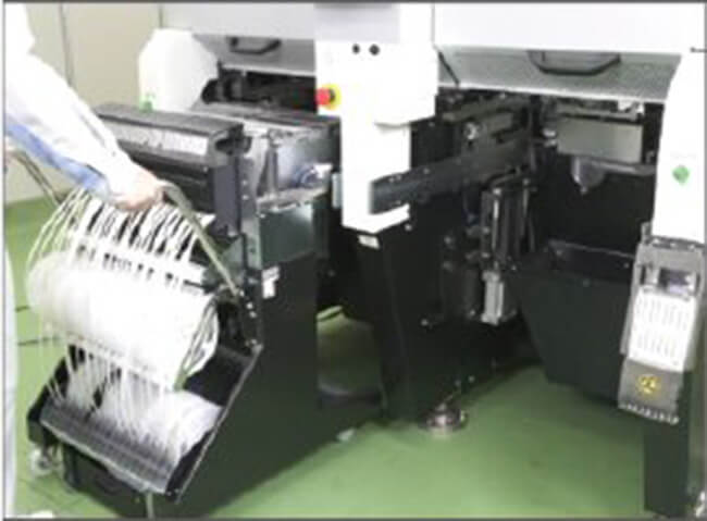 The number of feeder slots is 160 or more, the highest in the class. Since it is possible to set the next feeder for production in the feeder bank beforehand, the setup change time can be drastically shortened,and production preparation can be simplified and made more efficient.