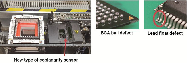 Simultaneous image-recognition and coplanarity inspection greatly improves placement tact compared with the conventional machine. High accuracy and high speed coplanarity checking prevent placement of defective component and enhance the reliability of the device.
