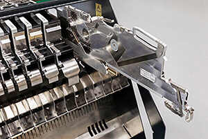 Feeder trolleys come standard with the iFlex . An additional set of trolleys can be obtained for offline setup preparation. Changeovers can be then executed in just minutes.