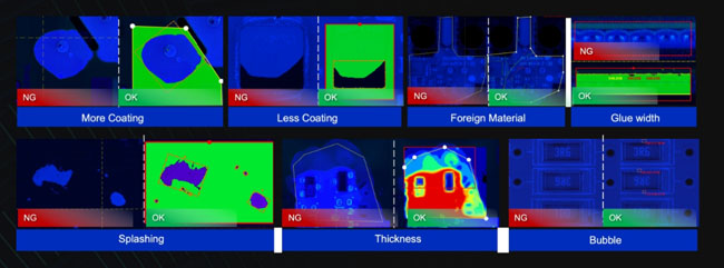 Support measurement of glue width and thickness (optional), data visualization, to meet the standardization and standardization management needs of coating process quality inspection.