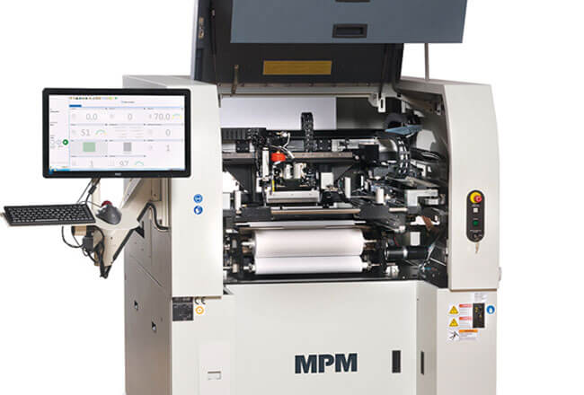 The Edison printer is the industries’ most accurate printer (certified by third party) with +/- 15μ @ 6σ wet print repeatability. Total throughput is lightning fast due in part to the highly-efficient, parallel processing of the stencil shuttle system, stencil wiping, paste dispensing and vision alignment system. The MPM Edison™ stencil printer is ideally suited for the growing Automotive, Semiconductor and Smart Device manufacturing markets.