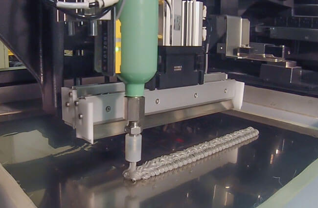 stencil in a clean, uniformbead. Deposition volumes,frequency and placement areuser programmable.