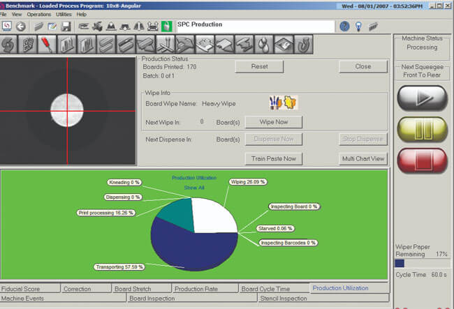 SPI Print Optimizer brings your Solder Paste Inspection (SPI) machine into communication with your MPM printer through a specially-developed common interface. When the SPI machine ‘sees’ X, Y and theta offset problems on a just-printed PCB, it analyzes the data virtually instantly and gives the printer instructions to correct those offsets, automatically, and ‘on the fly’.