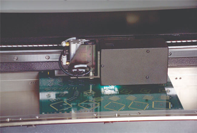The EnclosedFlow print head delivers superior volume/yield on fine pitch pads. Print fine pitch features such as 01005s and 0.3 mm pitch CSPs with up to 50% greater volume and 25% lower deviation that squeegee blades. The EnclosedFlow print head ensures optimal aperture filling for fine pitch devices and crisp uniform printing with less waste.