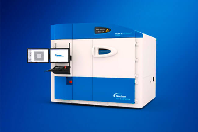 Ruby XL X-ray inspection system is the optimum solution for large boards. The unique Nordson TEST & INSPECTION NT maintenance-free, sealed-transmissive X-ray tube, providing 0.5 μm feature recognition and up to 20 W of target power, together with the 3 Mpixel long lifetime CMOS flat panel detector makes this jewel of a system cover all the failure analysis and manufacturing tasks required in the production environment.