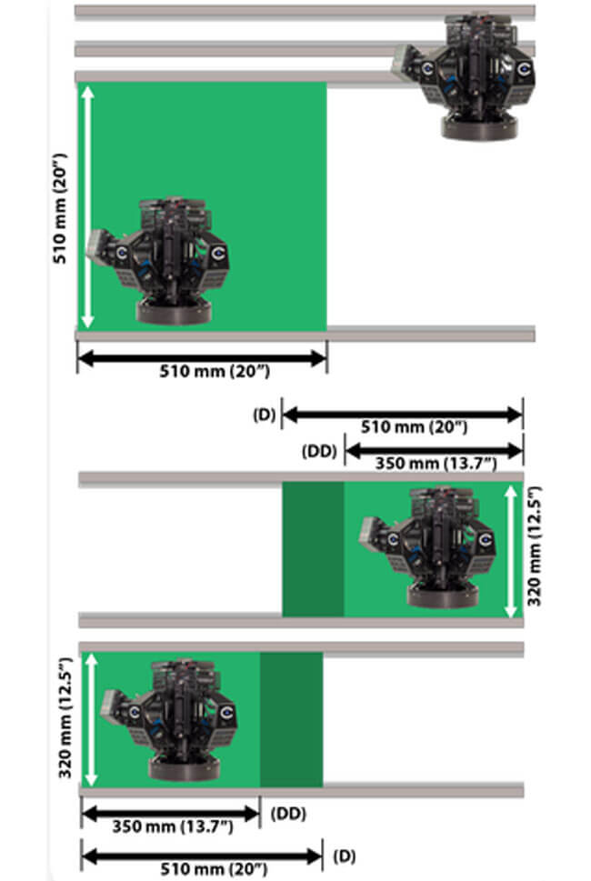 Single Lane: 510 x 510 mm (20 x 20 in.); Dual Lane: 350 x 320 mm (13.7 x 12.5 in.)