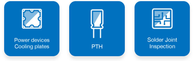 SMT setup for component and solder-joint inspection on PCB hybrid or chip level assembly processes X2 Transmission (2D) + SFT™